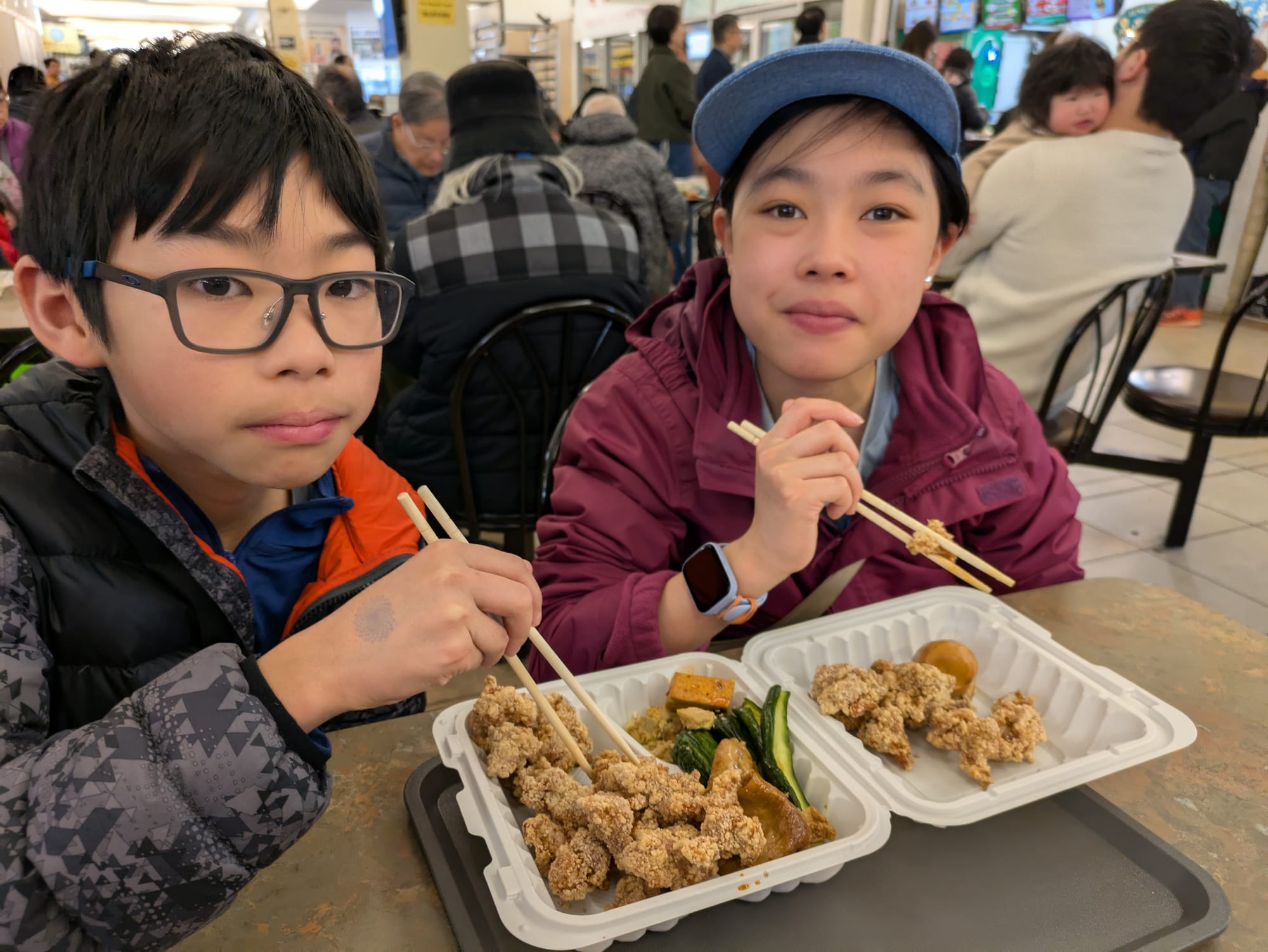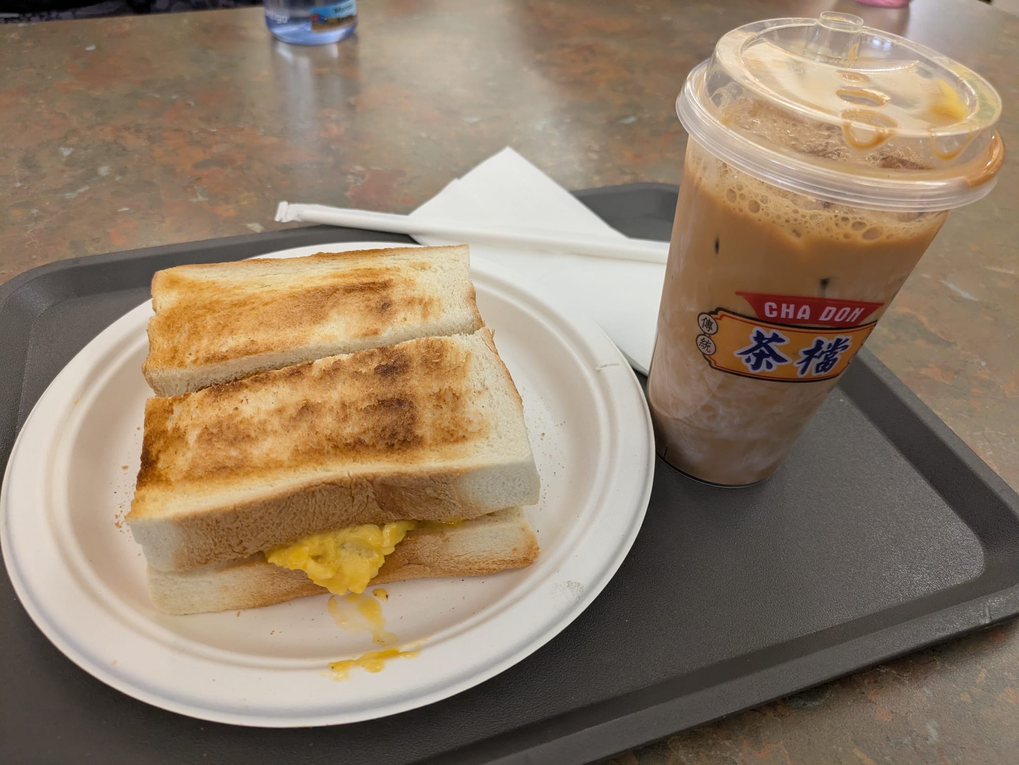 We shared a lunch of HK cafe egg sandwich and also got some Taiwanese popcorn chicken. Great deal in one of the food courts and yummy food! You get rice, pickled cucumbers, paper tofu, an egg, plus a lot of chicken for only $15! This place is in the food court of Empire Center in Richmond.