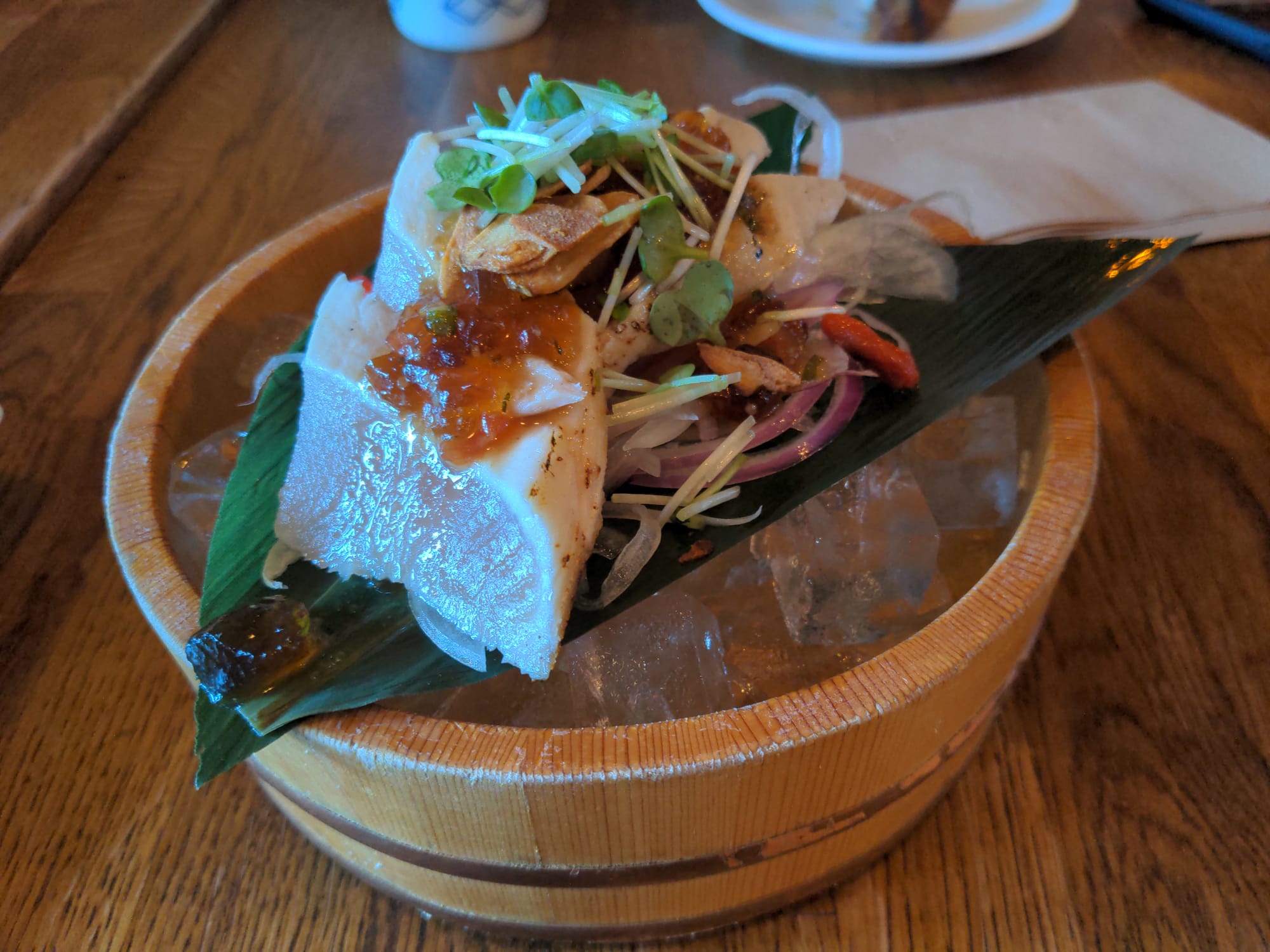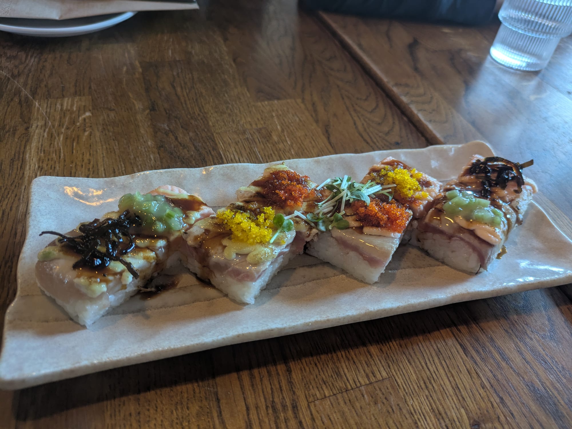 This place is called Raisu and it is a sushi/Japanese food restaurant. It is as bit more on the expensive side, but the fish was so fresh and the food was so good.