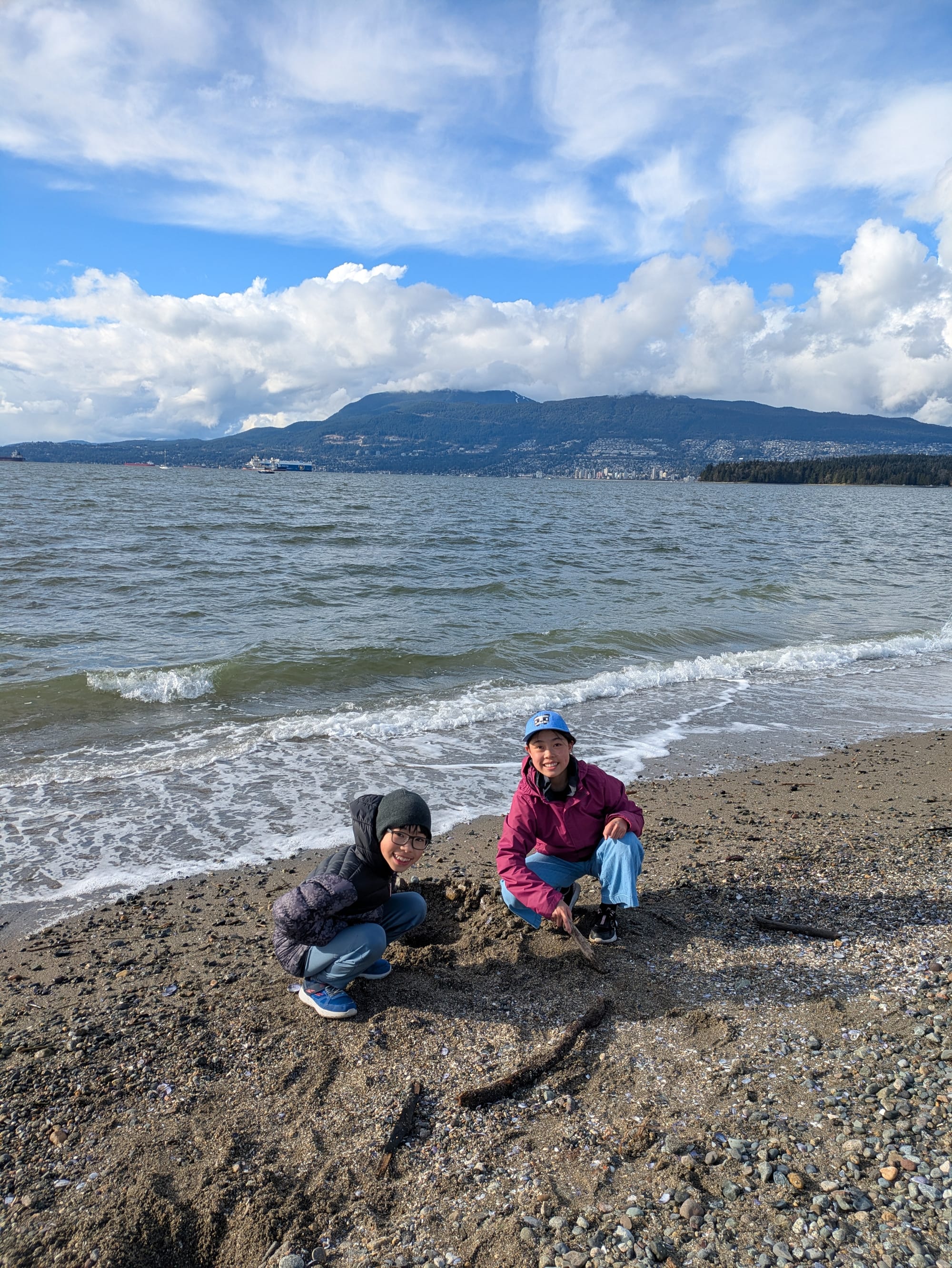 It was really cold but the kids still made fun out of it! We made water hole and made a barricade to block the tide. However, some people needed to abort because it was so cold out.