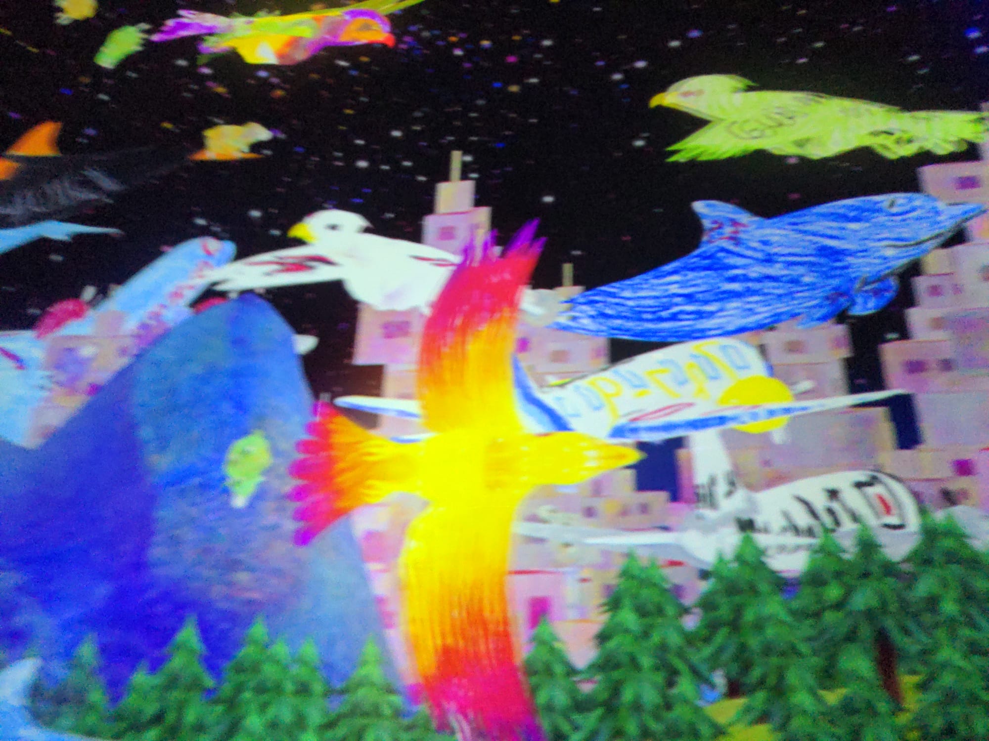 There was a part where you can draw something and then they will scan it and project it on the wall and you can even fly it around a bit.